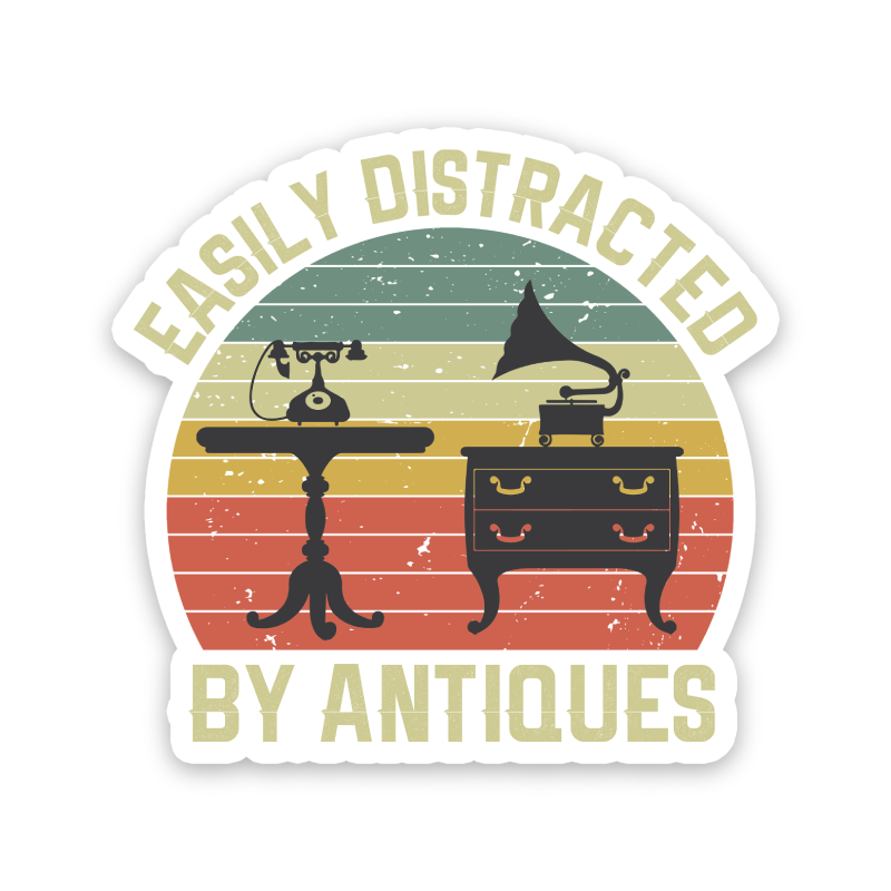 Don't let the past pull you away - show off your antique obsession with this quirky sticker! Whether you’re a collector or just window shopping, bring a bit of nostalgia with you on your next adventure. Time to get your sticker game up!