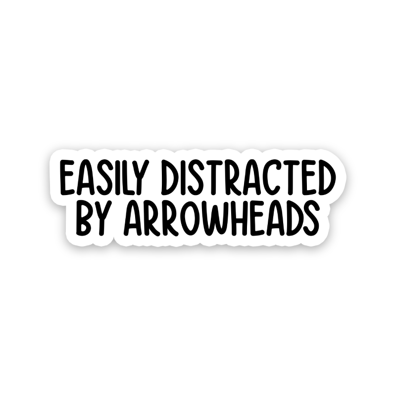 Show off your unique style with this Easily Distracted By Arrowheads Text Sticker. The perfect addition to any project, this sticker is sure to stand out. With its eye-catching design, you'll easily be able to express your individuality.