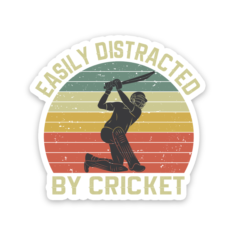 Catch the excitement of the cricket field with our "Easily Distracted By Cricket" sticker. This design represents the passion, strategy, and camaraderie of cricket, symbolizing the distraction it brings to cricket fans. Stick it on your cricket bat, water bottle, or any surface to showcase your love for this classic sport.