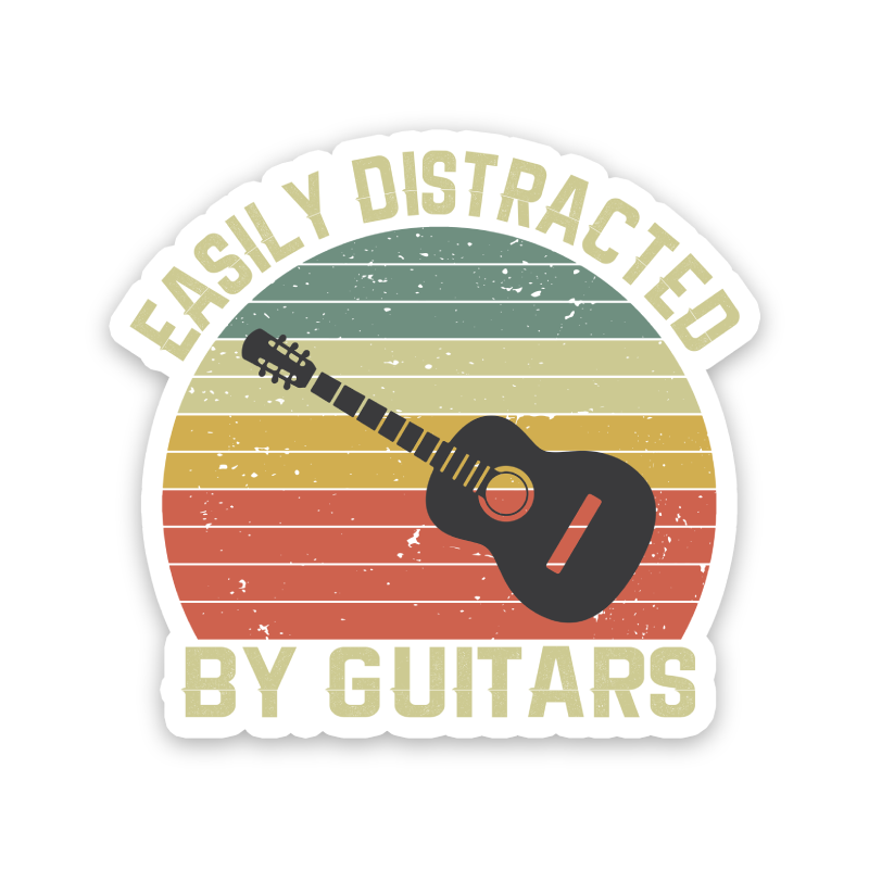Celebrate the magic of music with our "Easily Distracted By Guitars" sticker. This design captures the allure of guitars and their ability to transport us into a world of melodies. Stick it on your guitar case, amplifier, or any surface to showcase your passion for strumming and shredding.