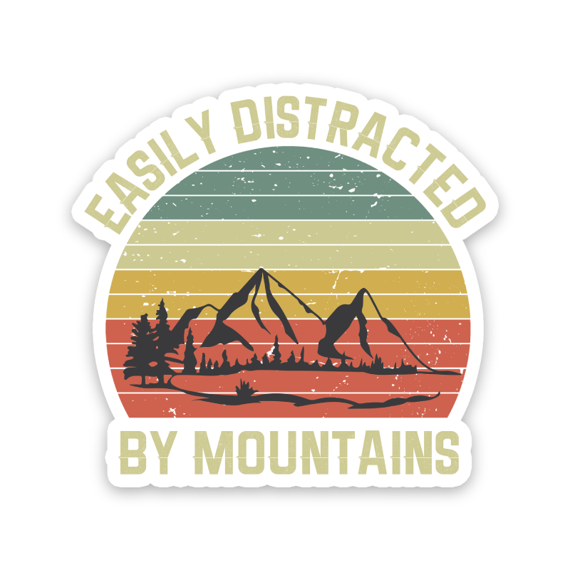 Let your passions do the talking with this Easily Distracted By Mountains Sticker! Show your love of the outdoors with this uniquely designed sticker that's perfect for laptops, car windows, or any smooth surface. Featuring a lightweight, but durable material, this sticker is sure to last.
