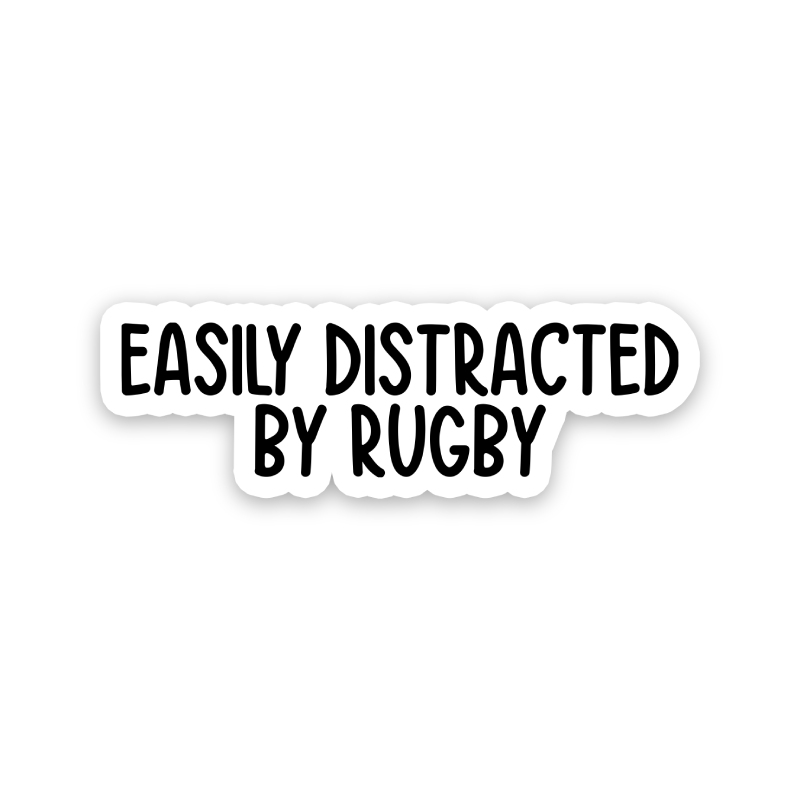 Add a splash of Rugby flair to any surface with this Easily Distracted by Rugby Text Sticker. Easy to apply and remove, this sticker is a great way to show your love of the game. Make a statement that's sure to attract attention and give you the excuse to talk about your favorite sport.