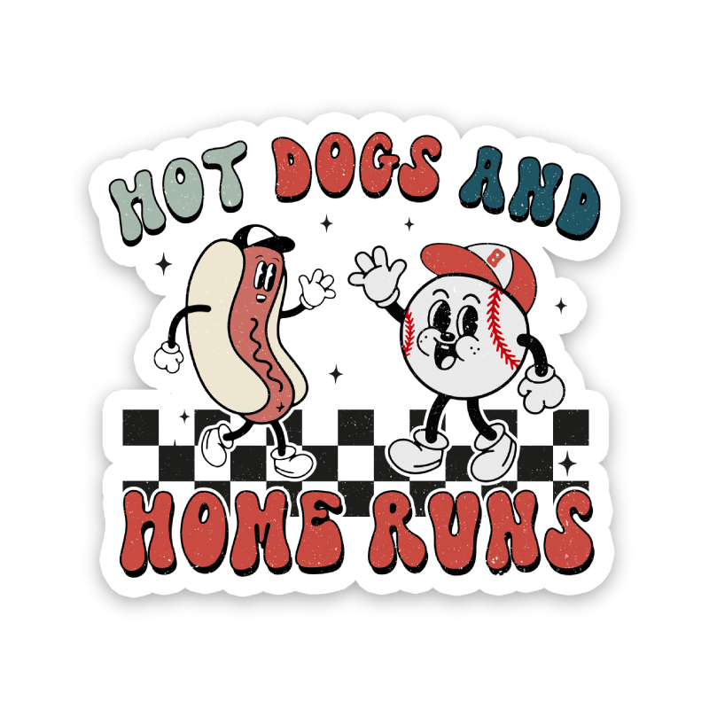 Combine two American favorites with our 'Hot Dogs And Homeruns' sticker. This sticker captures the essence of a classic baseball game day, where you can enjoy both the thrilling action on the field and a delicious hot dog in hand. Stick it on your belongings and let others know that you're all about the game and the snacks.