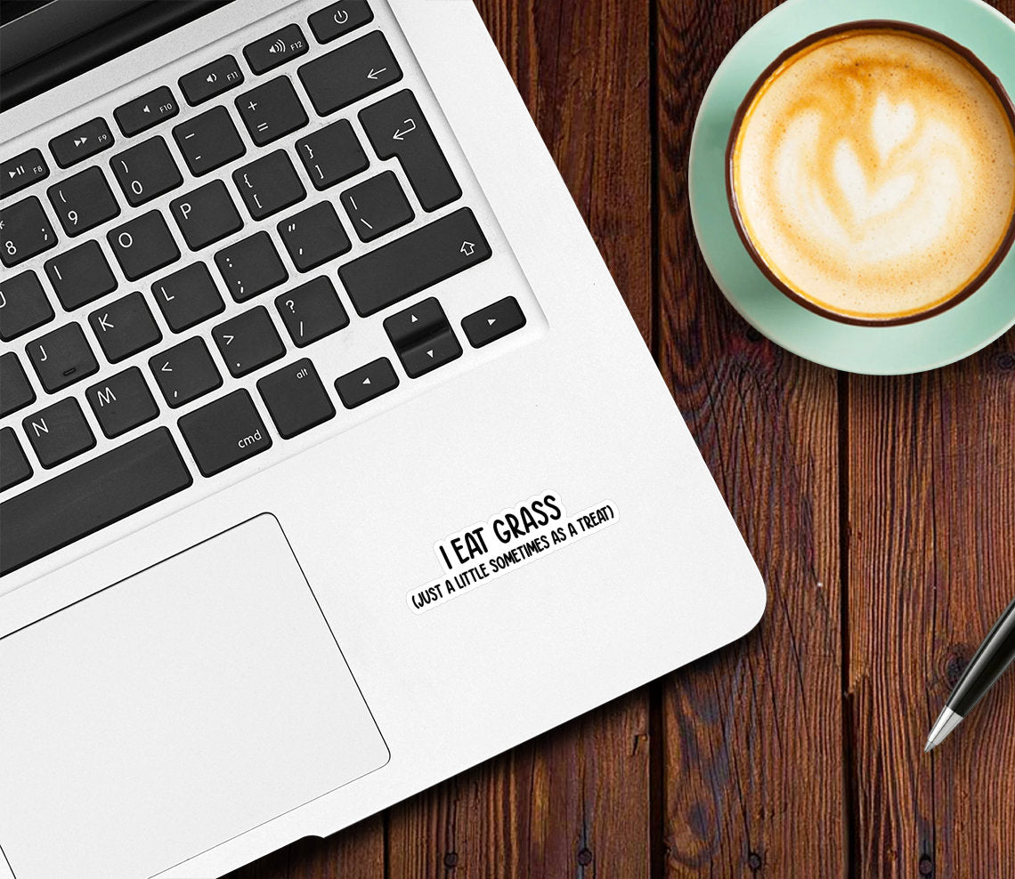 Embrace your quirky sense of humor and love for unconventional treats with our 'I Eat Grass! Just A Little Sometimes As A Treat' sticker. This playful sticker captures your lighthearted attitude towards indulging in life's little pleasures. Stick it on your belongings and let others know that you have a unique palate for unusual delights.