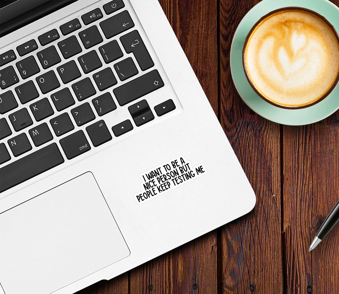 Striving to be kind in a world that tests our patience can be challenging. Our 'I Want To Be A Nice Person But People Keep Testing Me' sticker captures the struggle of maintaining your composure when faced with difficult situations. Stick it on your belongings as a reminder that even though tested, your intention is to spread kindness.