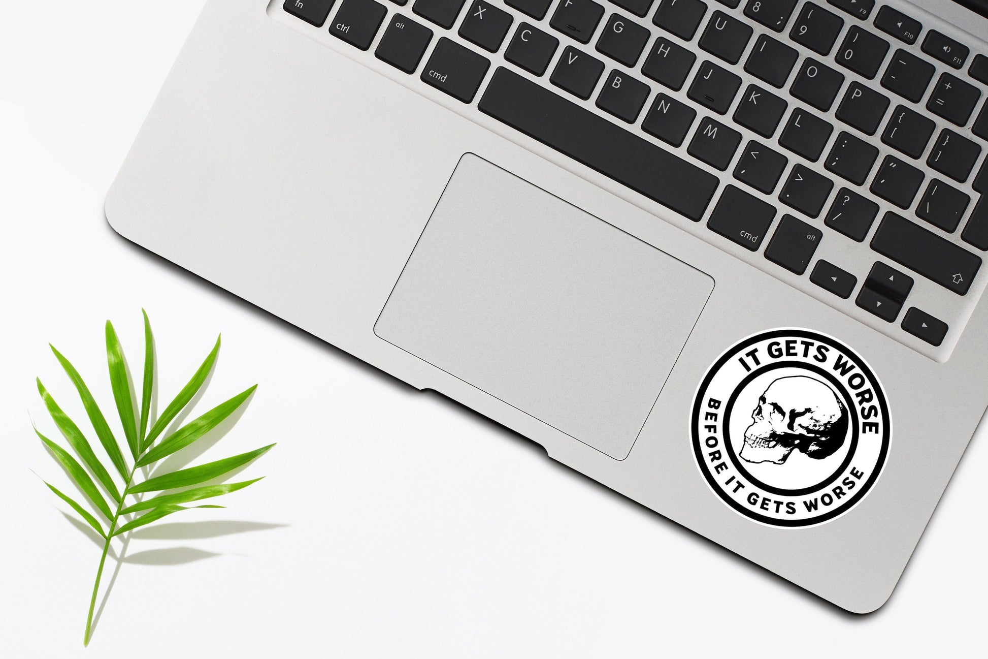 Embrace the humor in life's challenges with our "It Gets Worse Before It Gets Worse" skull sticker. This design captures the irony and resilience required to navigate difficult times. Stick it on your laptop, journal, or any surface to remind yourself to find humor in the face of adversity.