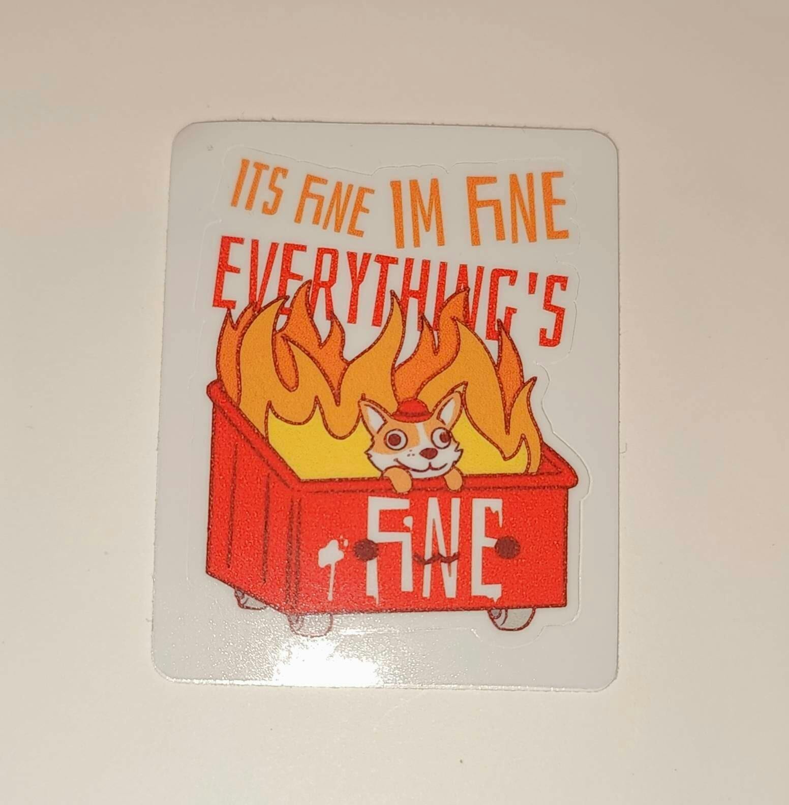 This It's Fine Im Fine Everything's Fine Dumpster Fire Sticker is perfect for laptops, notebooks, phones, tablets, mirrors, water bottles, tumblers, planners, journals, and more