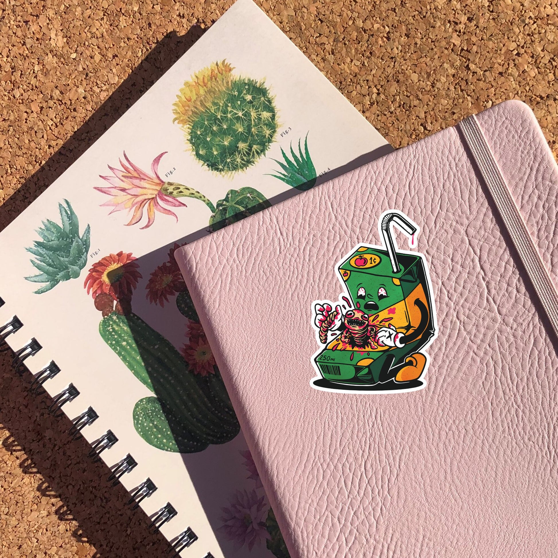 Quench your thirst for creativity with our "Juice Box Gore" sticker. This playful design features a juice box with a gory twist, adding a touch of macabre humor to your laptop, water bottle, or any surface that needs a refreshingly dark statement.