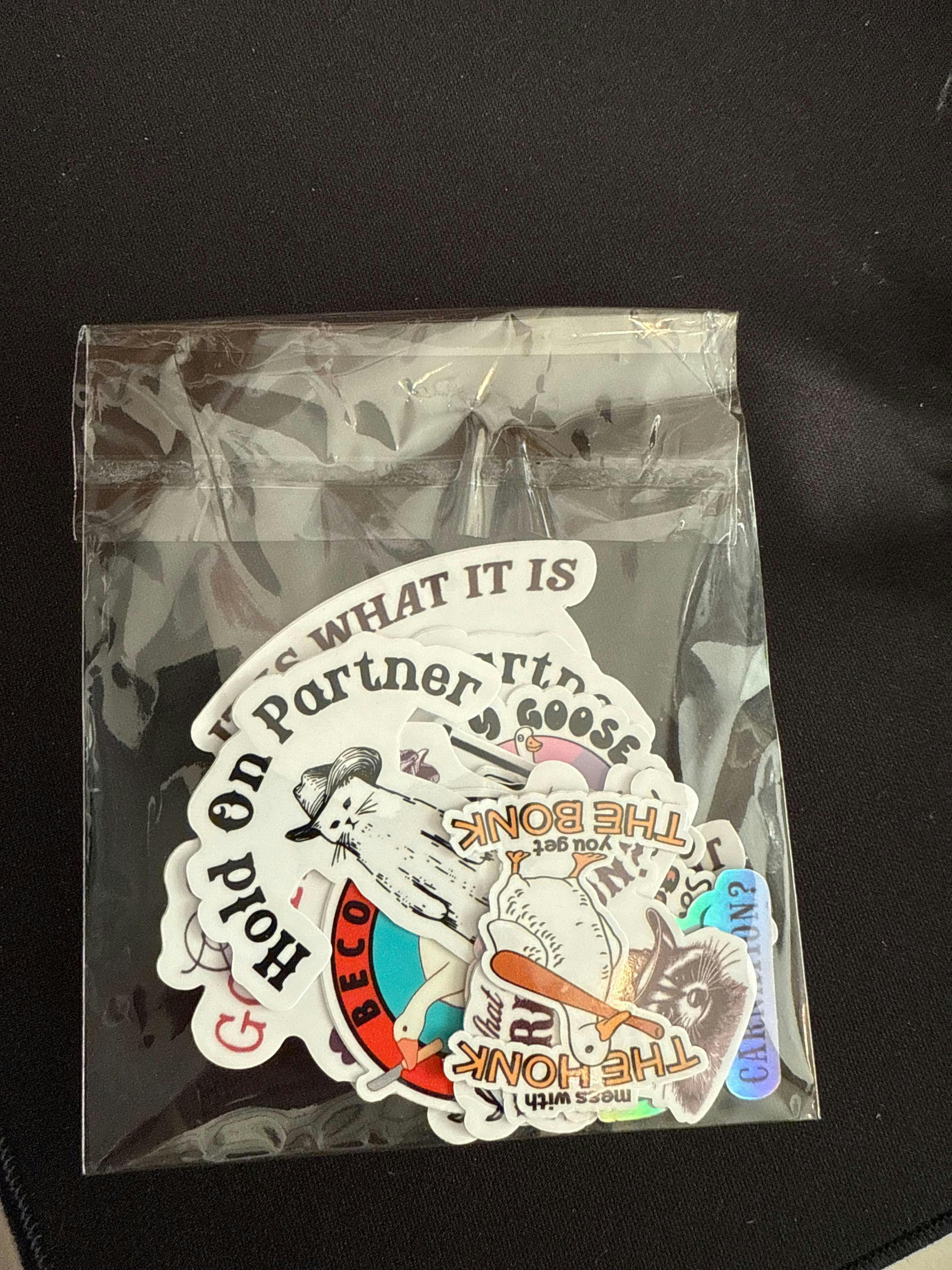 This Silly Goose Sticker Pack of 12 stickers is perfect for laptops, notebooks, phones, tablets, mirrors, water bottles, tumblers, planners, journals, cars, and more.