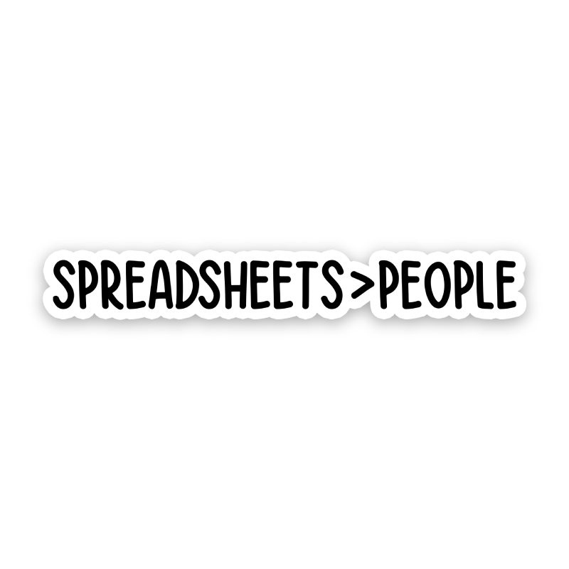 For the organization and data enthusiasts, our 'Spreadsheets Over People' sticker is a perfect fit. This sticker playfully showcases your love for structure, analysis, and efficiency. Stick it on your belongings and let others know that you prioritize data-driven decision-making and well-organized workflows.