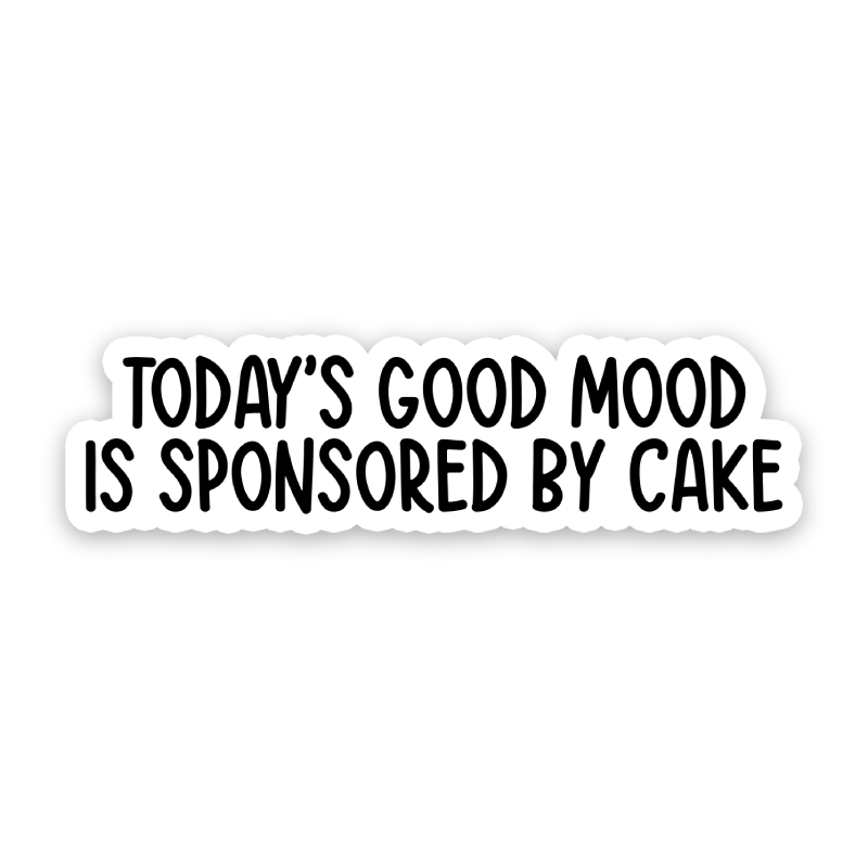 Celebrate life's sweet moments with our 'Today's Good Mood Is Sponsored By Cake' sticker. This delightful sticker adds a sprinkle of joy to your belongings. Stick it on your laptop, notebook, or any surface, and let others know that cake is the secret ingredient to your happiness.